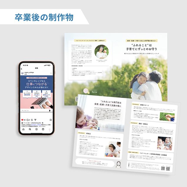 そして卒業後も「どうしていきたいか」をコペンはしっかり向き合ってくれました。その後、在宅ワーク可能な企業を紹介していただき、学んだスキルで仕事をすることに。不安ばかりのスタートでしたが、身につけたスキルでしっかり仕事ができ自信につながったことを覚えています。他にも個人の仕事や制作会社のコペンフラップで少しずつ企業とのお仕事をし、今に至っています。