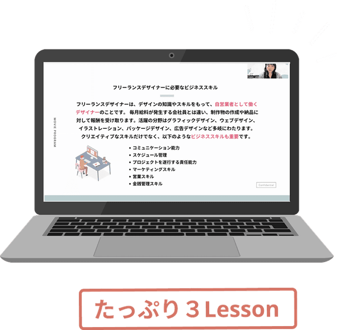 デザインだけでなく、営業のやり方や仕事の取り方、ビジネススキルなども教えてもらい5万円以上の単価で受注できるように。
